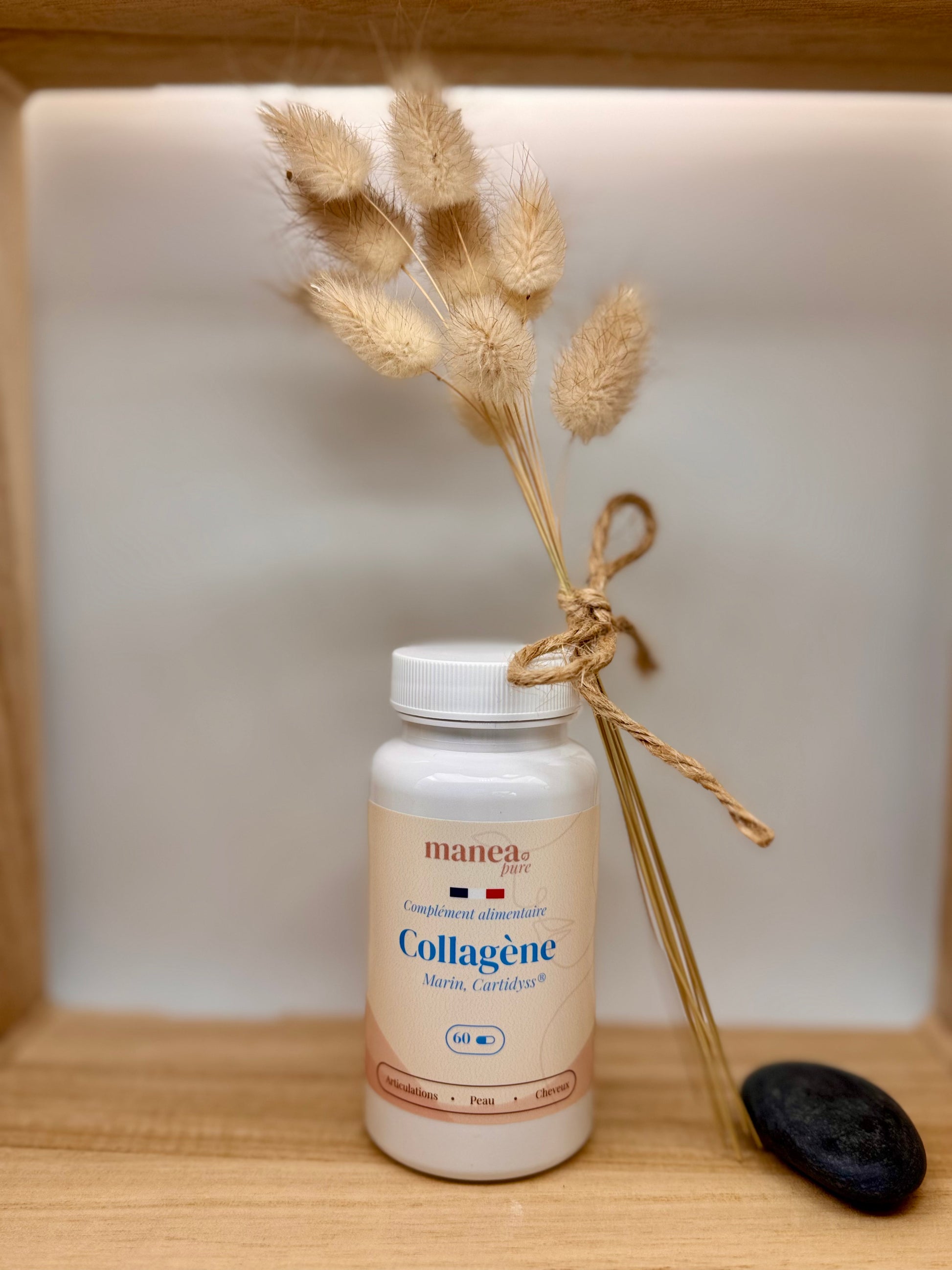 Soutient la mobilité des articulations (genoux, hanches, épaules) — et participe au maintien d’une peau souple & confortable au quotidien.